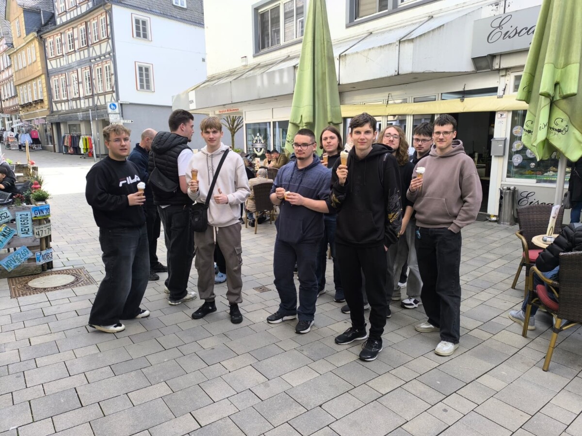 Ráno jsme se přivítali se studenty z Wetzlaru, kteří nás provedli po škole. Během dopoledne začaly práce na prezentacích, modelech karoserie a kolech. Odpoledne jsme se vydali do města, kde nás jeden z žáků seznámil s historií města. Během prohlídky nám byl představen goticko-románský Dóm, známý Lottehaus a celé historické centrum Wetzlaru. Osvěžení lahodnou zmrzlinou nesmělo chybět. Po rychlé večeři jsme se přesunuli k večernímu relaxu do bazénu v Asslaru.